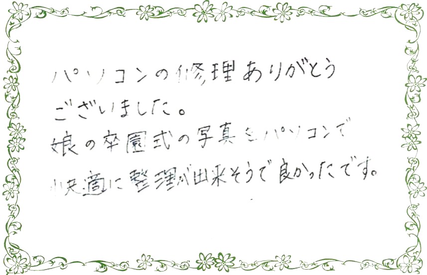 2015年4月5日行田市棚田町G様より大変嬉しいお言葉を戴きました!