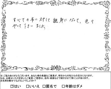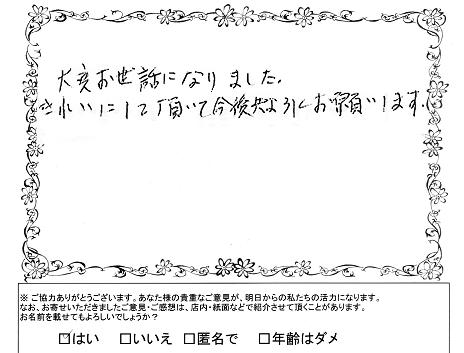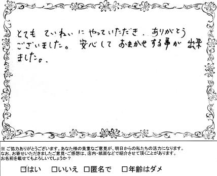 鴻巣市下忍M様より大変嬉しいお言葉を戴きました!