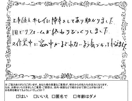 行田市城西M様より大変嬉しいお言葉を戴きました!