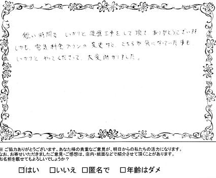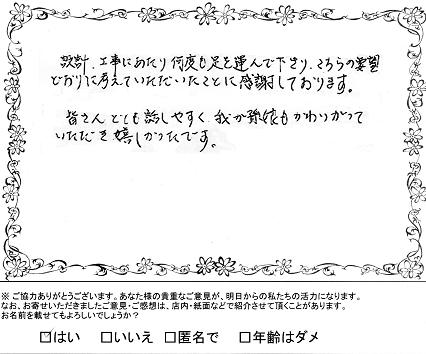 行田市城西H様より大変嬉しいお言葉を戴きました!