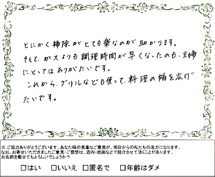 今までに比べ、掃除が楽チンと喜んでいただきこちらも大変嬉しい気持ちです。