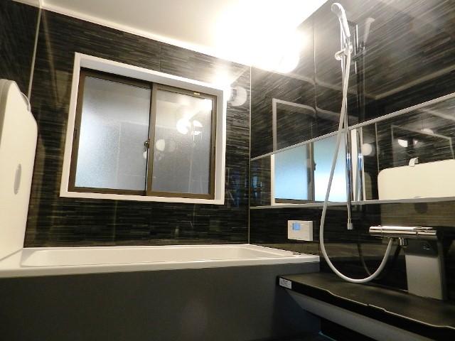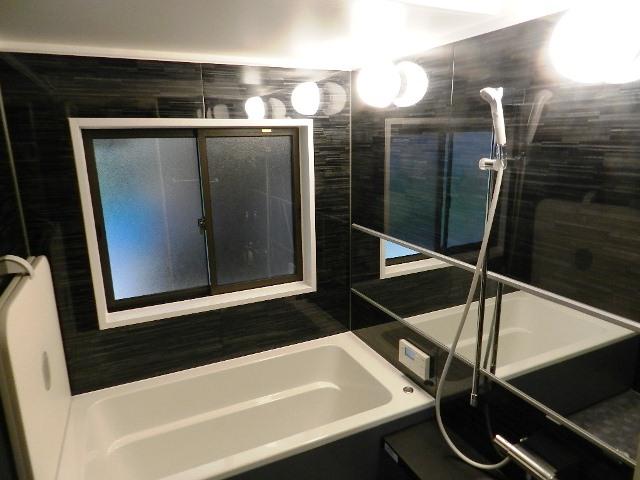 浴室内は広くて、また壁面の色やワイドミラーなど凝ったシステムバスに大満足です!