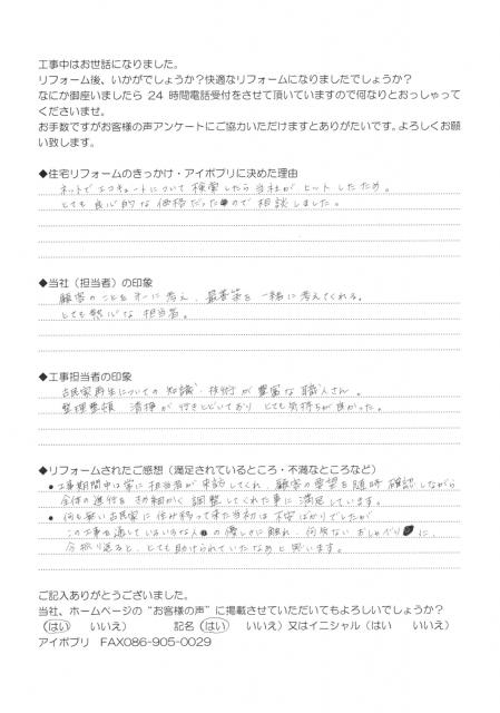 ◆リフォームされたご感想(満足されているところ・不満なところなど)