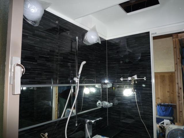 わらぶきトタン屋根の100年住宅の古民家にかっこいいシステムバスルームが完成しました!