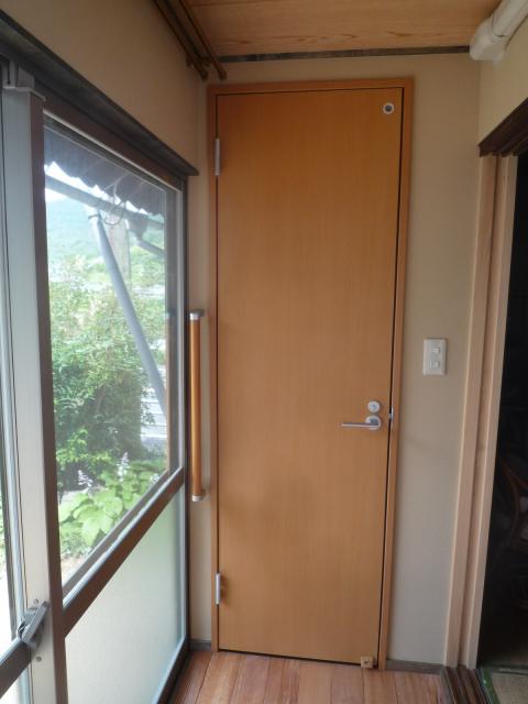 トイレ入口は段差のないバリアフリー仕様で施工しました。
