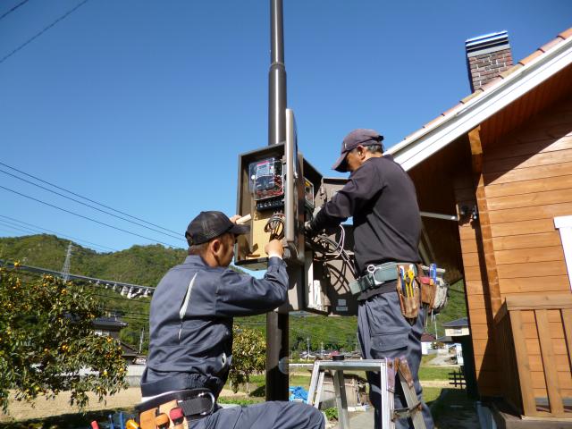 4.並行して電気メーター、売電メーターの接続など作業をしていきます。