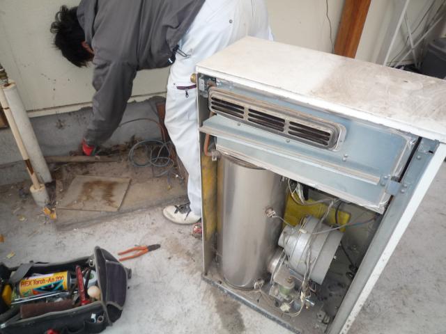1.今までお使いになられていました「石油給湯機」と「ふろがま」です。