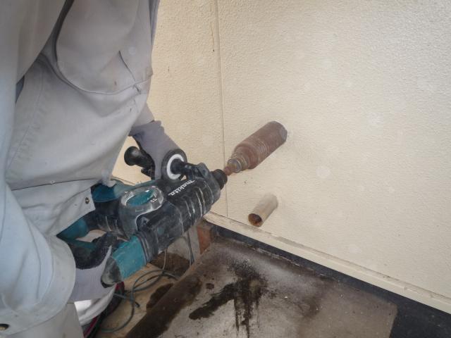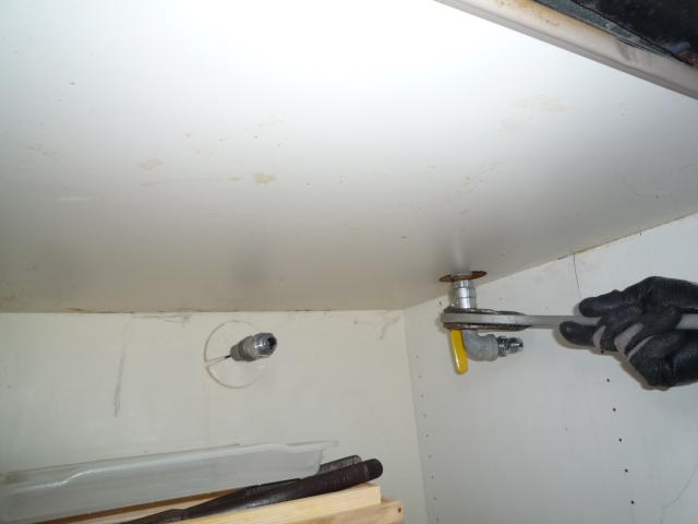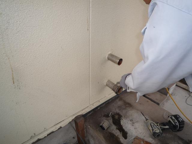 ガス管を撤去し、その穴を利用してIHクッキングヒーター用の電源配線を取り付けます。