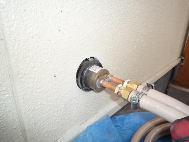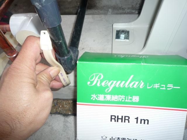 給水側は特に注意を払い、配管に凍結防止ヒーターを巻きつけ、その上からパイカ保温材を取り付けています。(水道の水が凍結しない地域の方は凍結防止ヒーターは必要ありません)