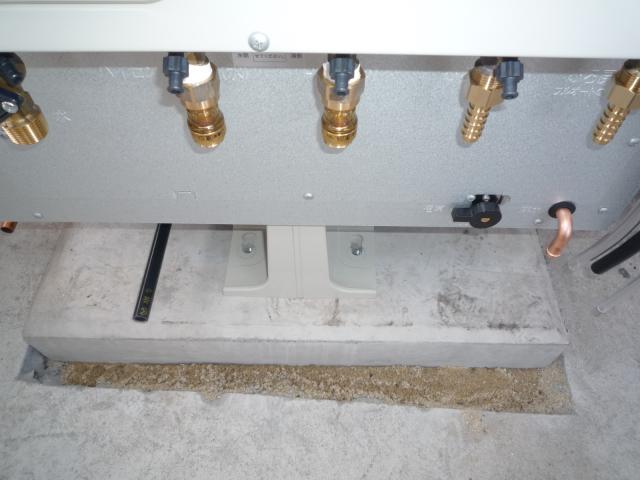 アンカーボルトを設置しエコキュート貯湯タンクと接続します。