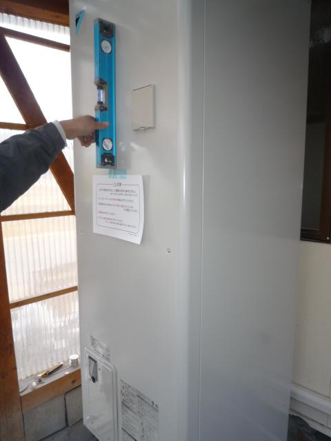 11.エコキュート貯湯タンクの水平・垂直を確認します。