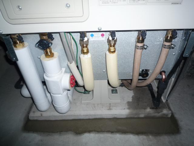 右側2本がお風呂配管(ハイブリッドホースでフルオート対応)です。