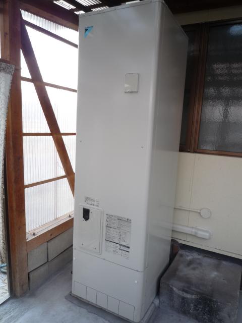 写真では写っていませんが、ヒートポンプはエコキュート貯湯タンクの左後ろの位置になります。