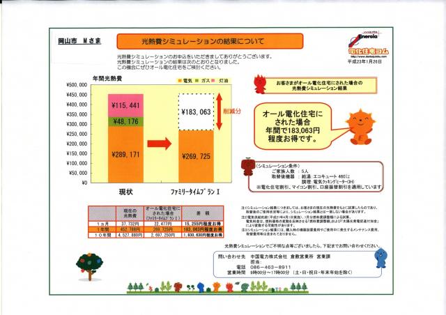 灯油代、ガス代をお聞きして、中国電力さんにシミュレーションをしていただきました。