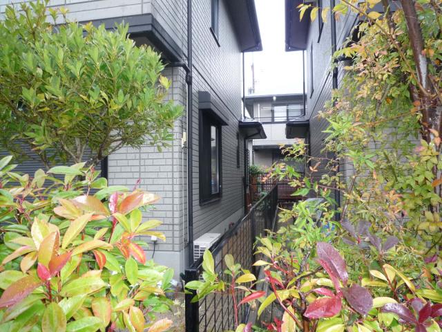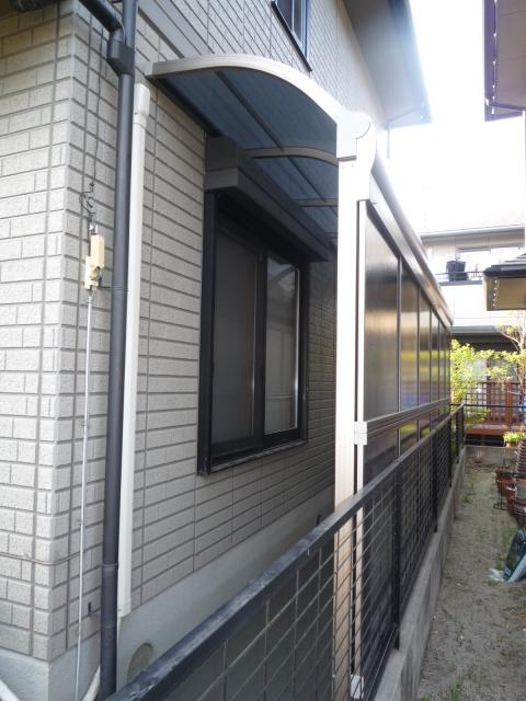 北側ひさしの高さと窓シャッターBOXの高さ、お隣との境界に注意して位置決めをして施工しました。