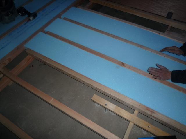 3.床の断熱材はスタイロフォーム910×1820×50mmを使います。