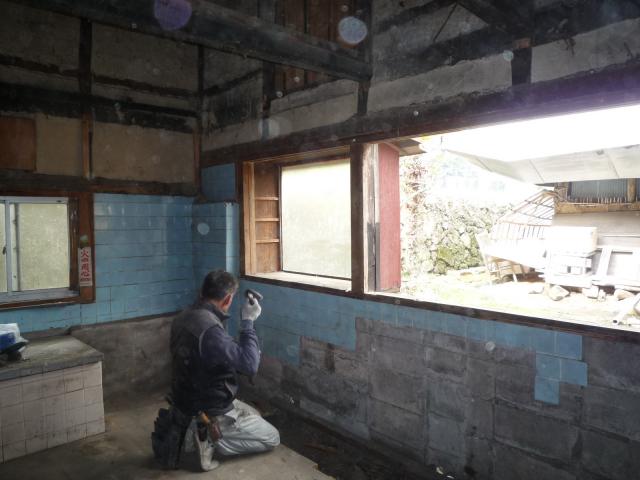 2.今までお使いの据置式キッチンを取り外し、床・壁・天井も解体します。