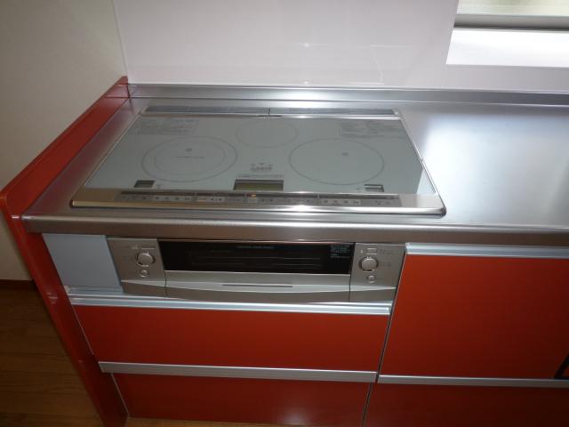 13.IHクッキングヒーターは使い易くて高級感のある三菱CS-T30HWS 3口IH 75センチワイドタイプを選びました。