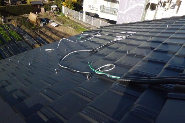 分かりづらいですが瓦の隙間から金具を出したところです。