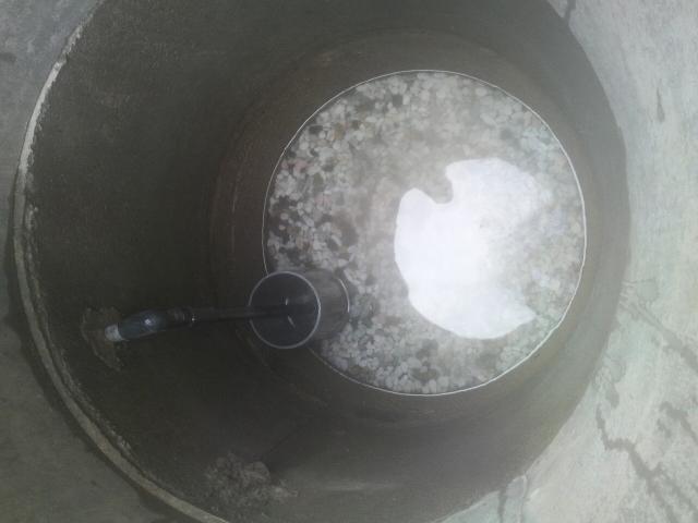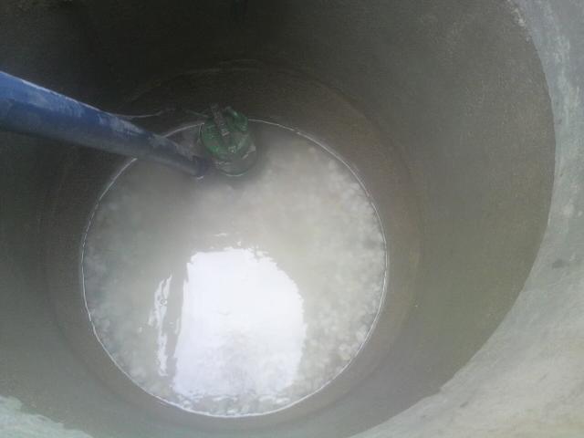 まずはポンプで井戸水をどんどん抜いていきま~す。