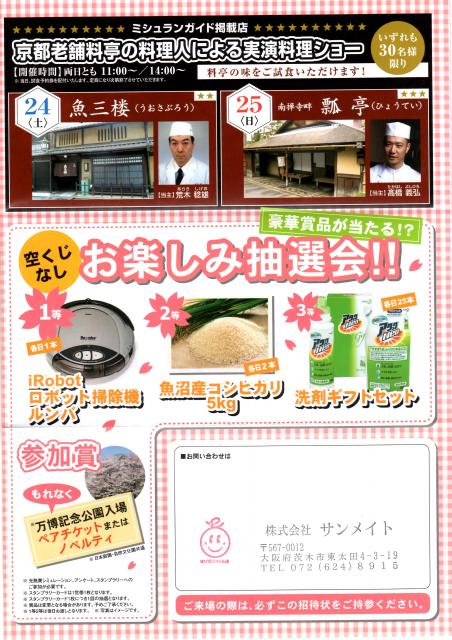 25日(日)には、「瓢亭」の当主によるIH実演ショー(11時~/14時~)