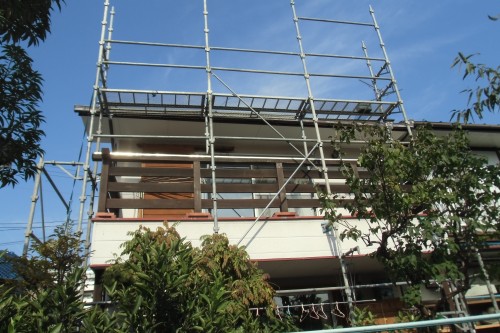 本日は、足場設置作業を行ないました。