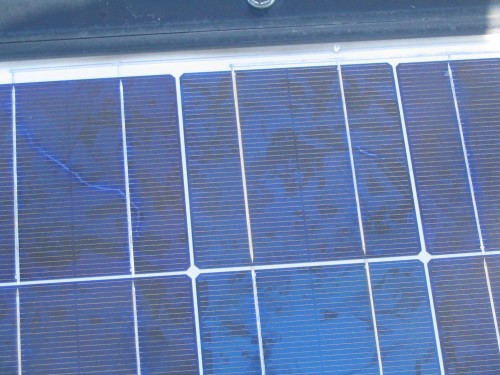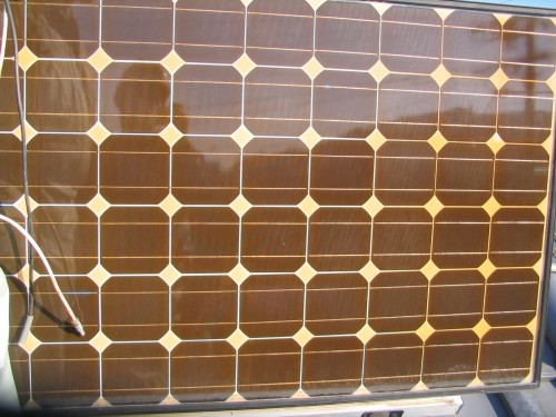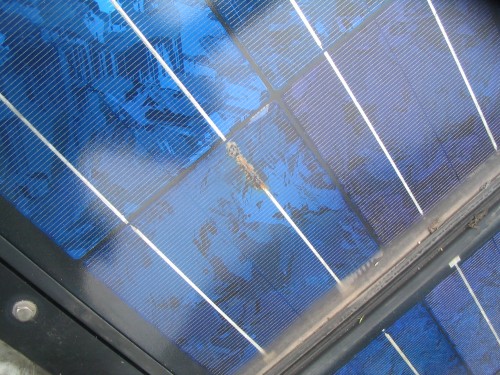 太陽電池パネルが、一部焦げ付いてしまいました。 このパネルは、11年間使用して取り外しました。