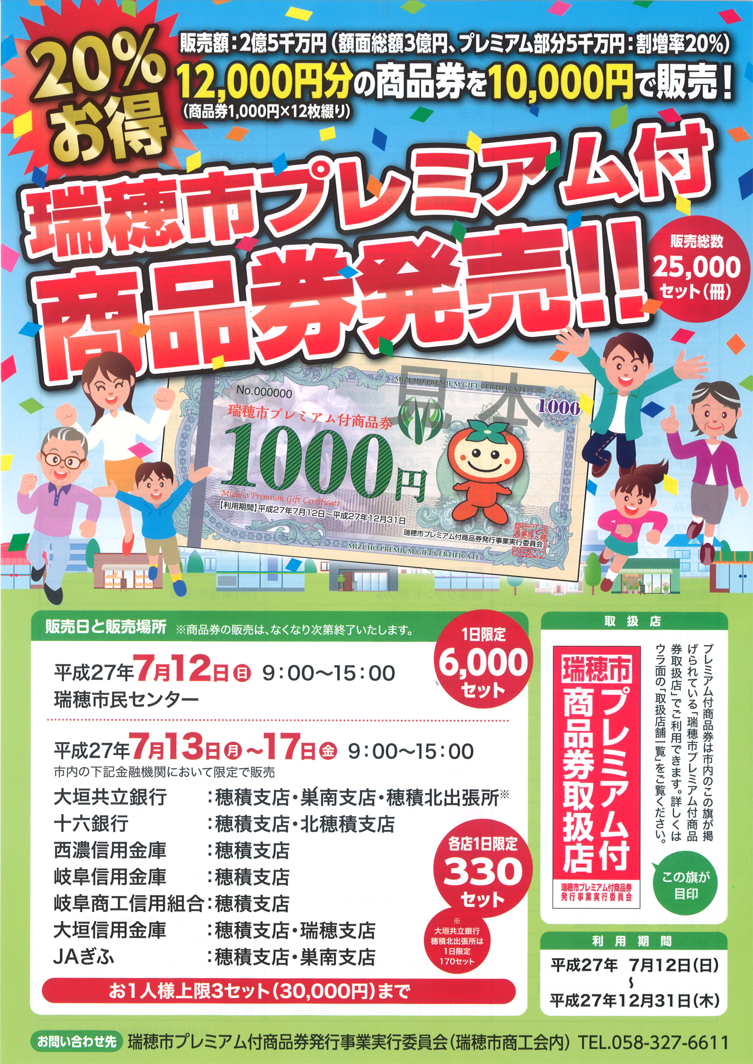今、各地で、 プレミアム付き商品券 が発売され始めています。 当地:岐阜県瑞穂市でもこの商品券が、いよいいよ7月12日より発売を始めます。
