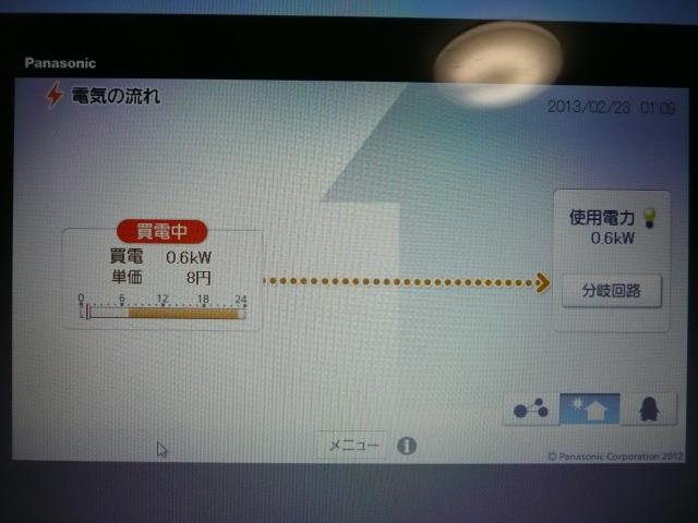 現在、家の中の電気量は全部で、0.6kw(600W)使っているということです。