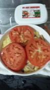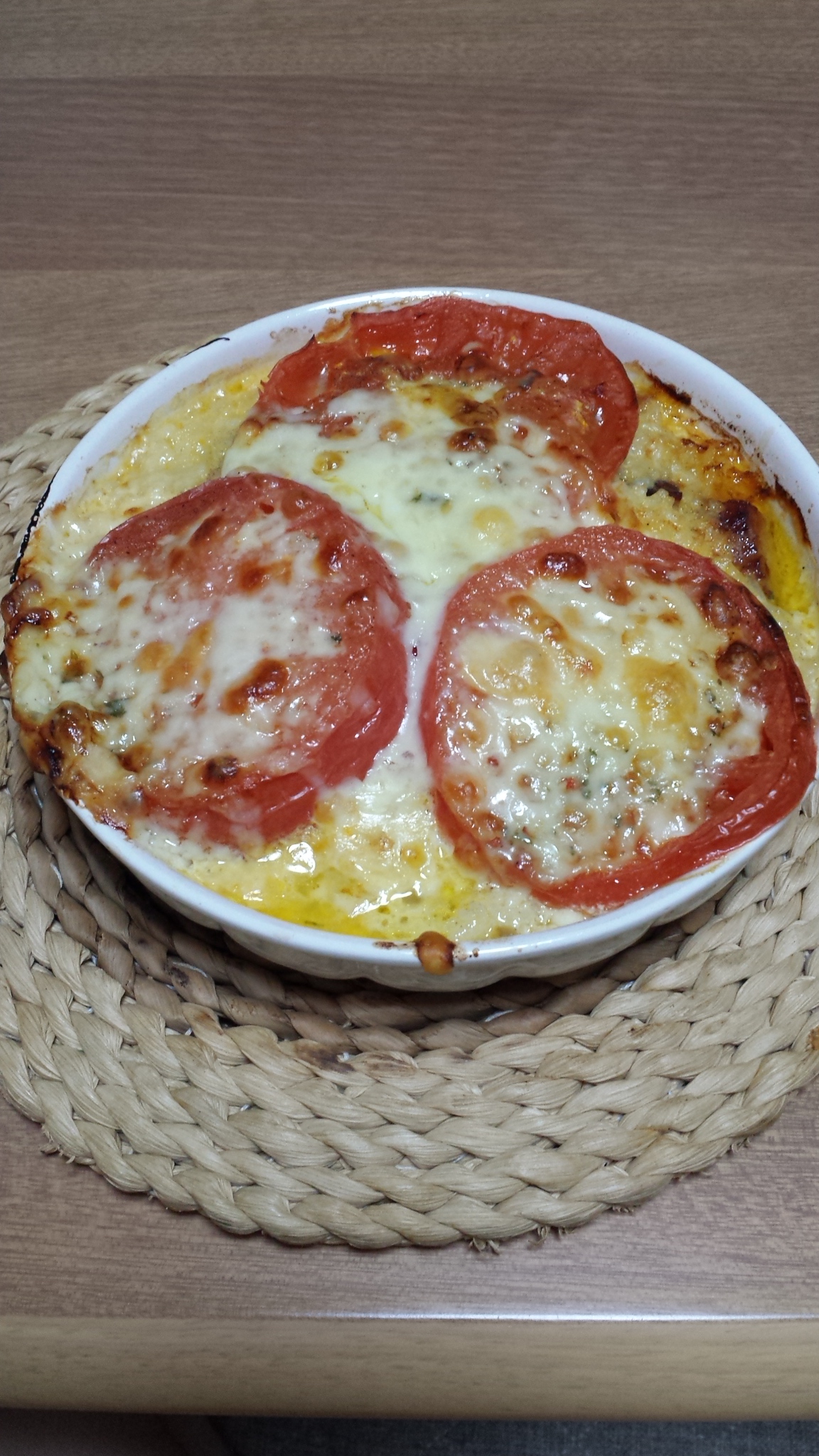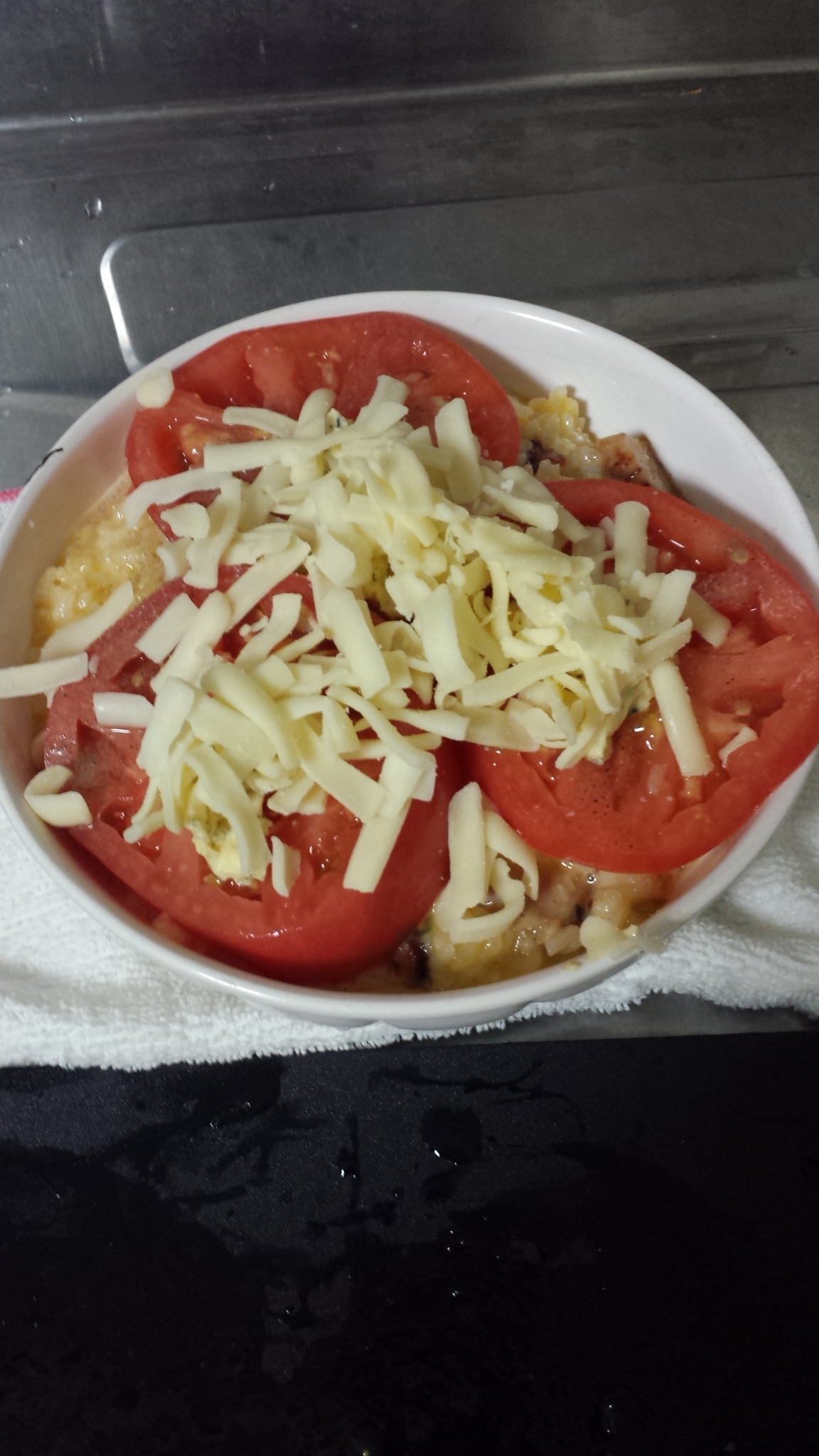 続いて輪切りにしたトマトをのせてチーズをのせます