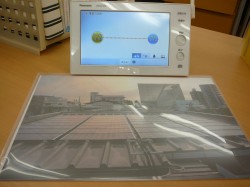 全量買取なので、家庭用のようなリアルに手元でその発電を確認できるモニターは用意されていないと、打ち合わせ当初は聞かされていました。ところが施工直前に全量買取対応モニターが近々に発売されるとの知らせを受けすぐに手配、それが稼働におくれること10日ほど後の10/30に設置されました。