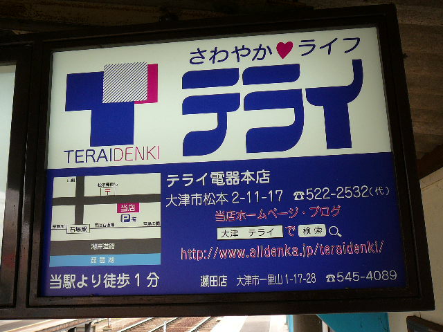 最寄の京阪石山坂本線石場駅より歩いて1分で当店! 石場駅時計広告をリニュアールいたしました。 地図で確認してご来店ください。 お待ちしております。 y.terai