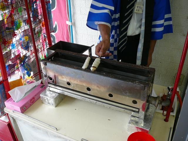 スタッフブログ 2012年7月1日本店では、唐崎神社で有名なみたらし団子を担当者が、焼きながら店前でおまちしております。