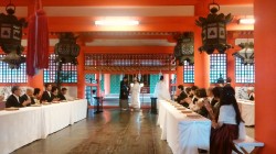 世界遺産 宮島でちょうど結婚式を挙げられていたので、幸せのおすそわけにも預かってきました。
