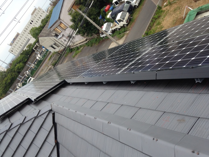 この度は数ある太陽光発電施工会社の中から、当店をお選び頂きありがとうございました。屋根塗装も同時施工にてお申込みいただきましたK様、現状よりやや暗めのグレーをご希望で太陽光発電パネルとの外観もマッチして、とても美しく仕上がり私も嬉しく思います。また、工事日程のご連絡が遅くなりました事、誠に申し訳ありませんでした。今後このような事がないよう重々注意してまいります。今後とも長いお付き合いになりますが、何かお困りの事などございましたらいつでもご連絡お待ちしております。