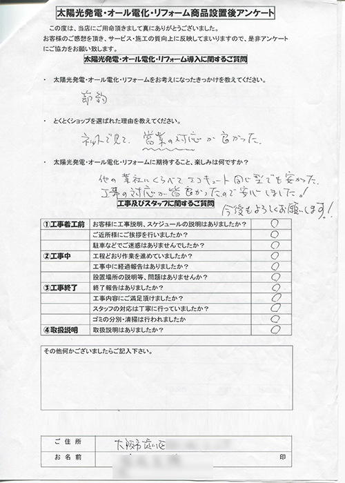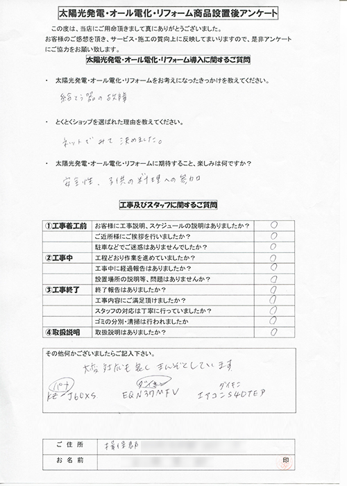 設置後アンケート 揖保郡 M様邸