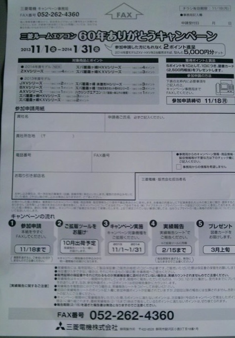 三菱ルームエアコン60年ありがとうキャンペーン(販売店・ウェンズ㈱)