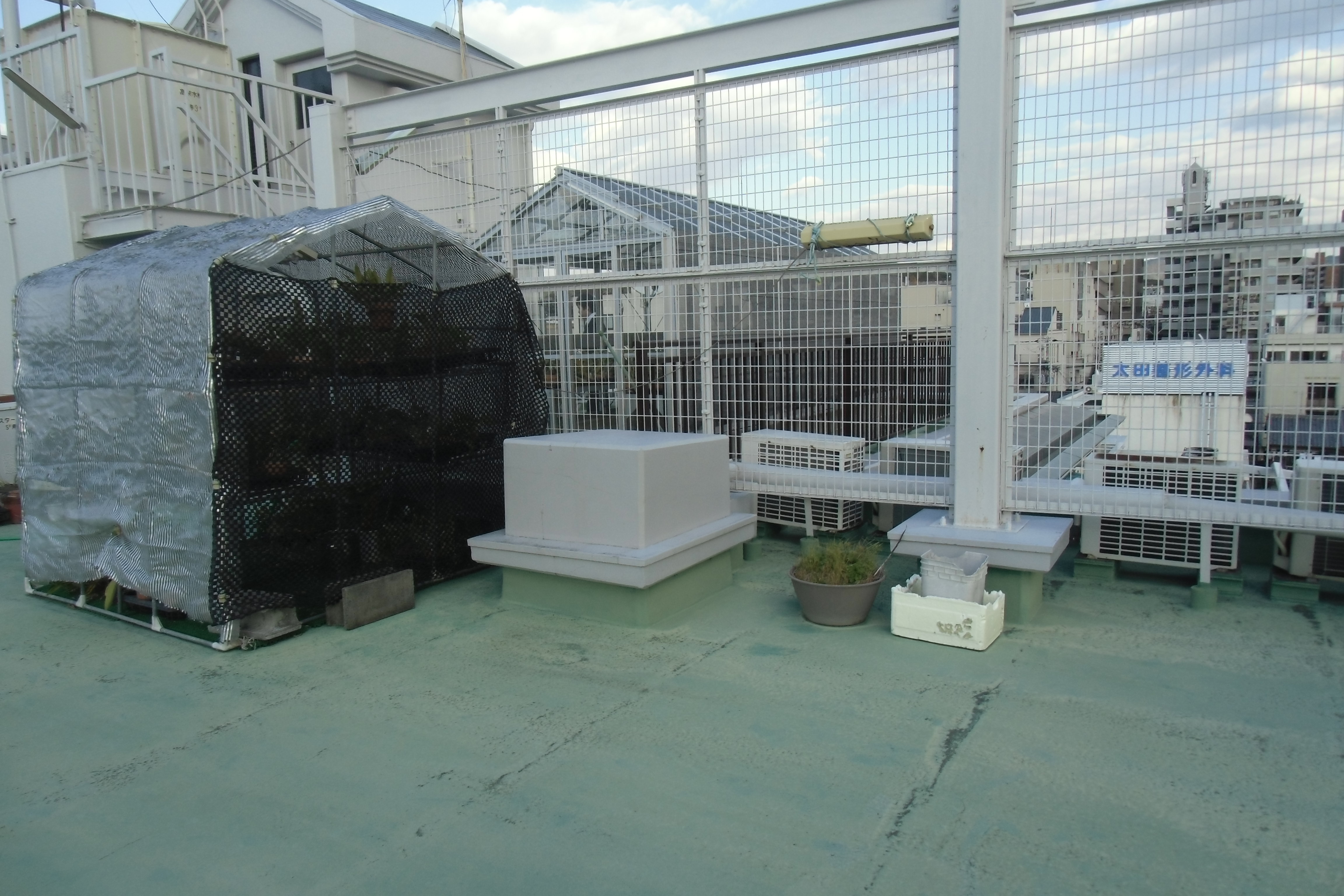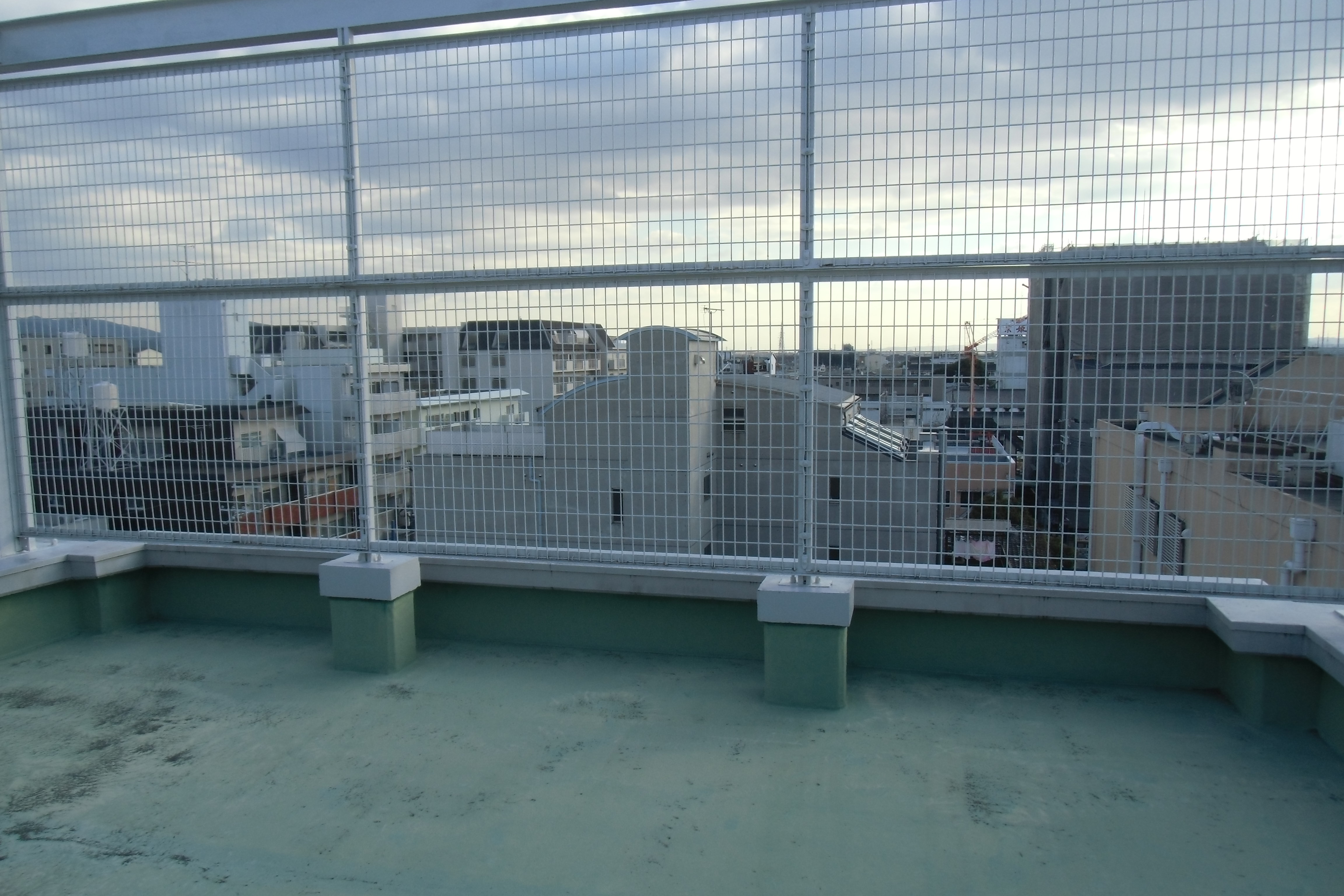 メーカーご担当者同行で、現場屋上の陸屋根採寸等の調査に再訪です。