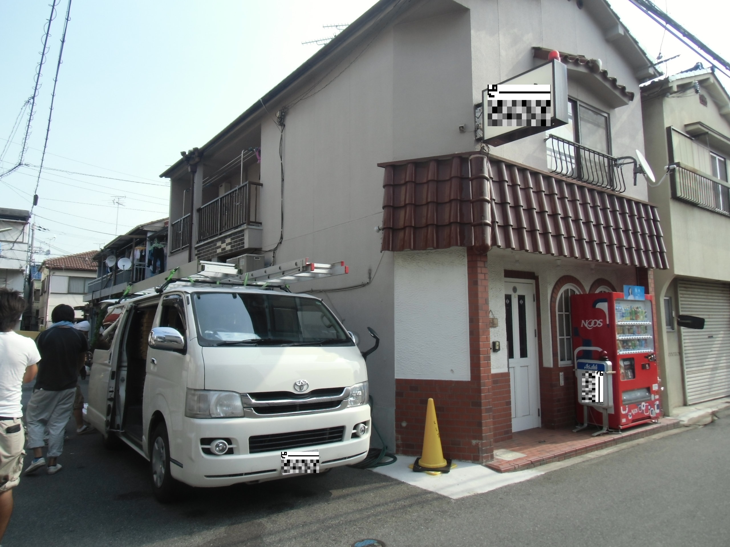 12日(月)着工作業開始時点で、32度で炎天下の酷暑で、職人にとって体力的厳しい状態です。