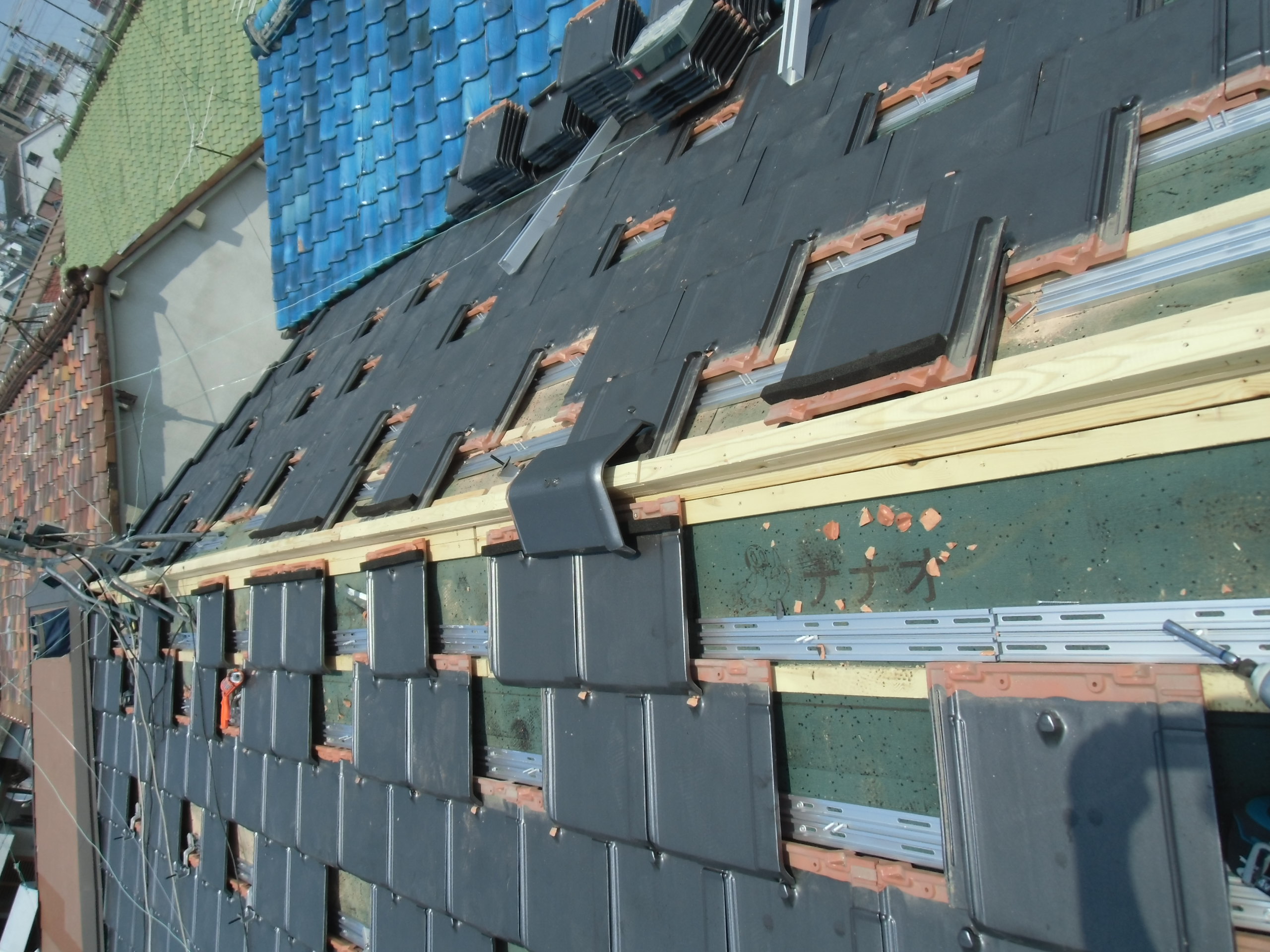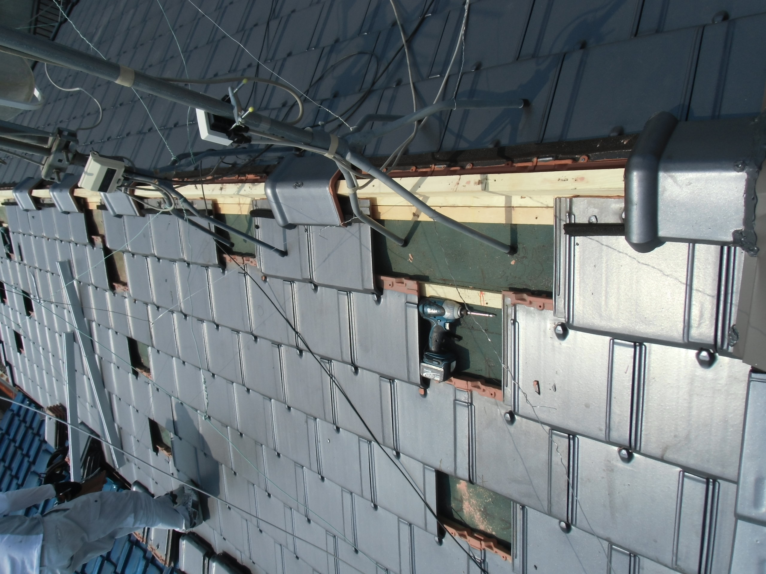 瓦屋根の架台作業迄の工程で、(午後時・温度40度前後)手を止め終了決断させて頂きました。
