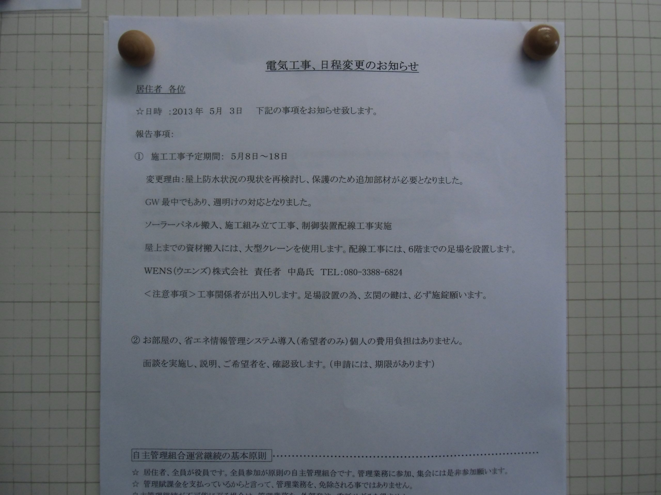 近隣各位へ工事承諾ご案内(3日間施工内容説明実施)挨拶回り済、安心・安全・丁寧・確実作業。