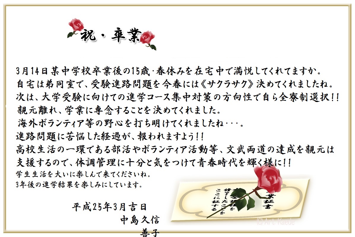 6月に開催される1年生クラス対抗演劇コンテストをクラス対抗演劇コンテスト発表に向け連日の演劇練習の他に部活等に汗を流していると今春にスマートホン愛用デビューの次男から中間考査等学校生活と近況の連絡で元気に頑張って居る様子に安堵感。