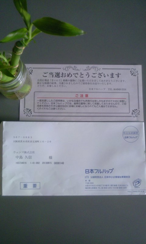 さて、過日に社長がひそかに会員広報誌『まいんど』掲載の催物に応募していました。