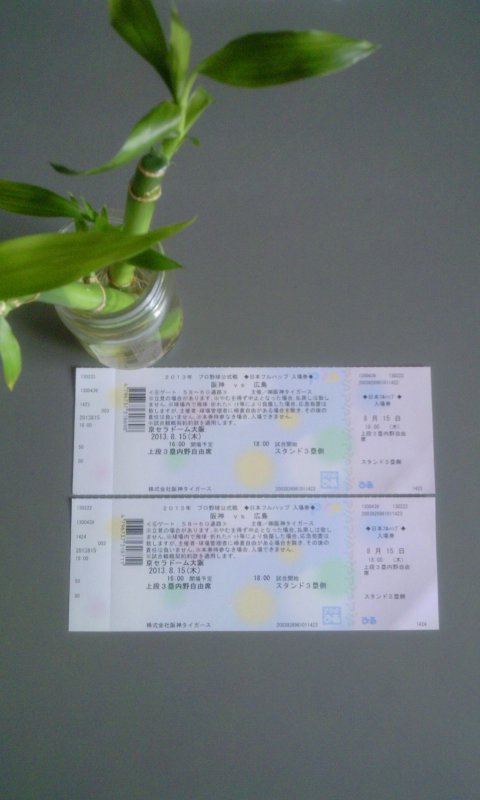 阪神VS広島 主催/㈱阪神タイガース 京セラドーム大阪 2013.8.15(木)16:00開場予定
