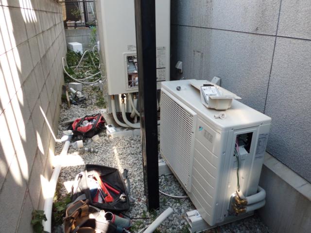 当日の施工主さま邸・エコキュート&IHクッキングヒーター始動に向けて!の“オール電化工事”