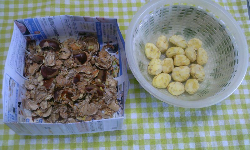 午後のブレイクタイムに合わせて、過日にお裾分けで頂いた沢山の栗を家事等の合間に