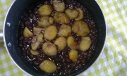 小豆を上白糖で煮炊きを並行調理で、材料の栗皮むき後に小豆鍋へ炊合せましたら