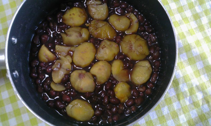 当方は、ラジオを聴きながら15.6個の栗を丁寧に栗の殻と渋皮むきしている間に小鍋で