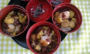 今秋 初のお汁粉(ぜんざい)を代表と焼餅を栗と小豆にまぶしながら頂きました。