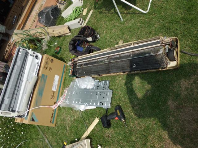 ▼新旧エアコンの取り替え作業
